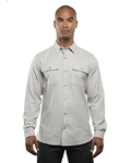 4.2 oz. 80/20 cotton/polyester; 2 chest pockets with button flaps; Button cuffs; Half moon back yoke; Locker loop; Hem bottom;